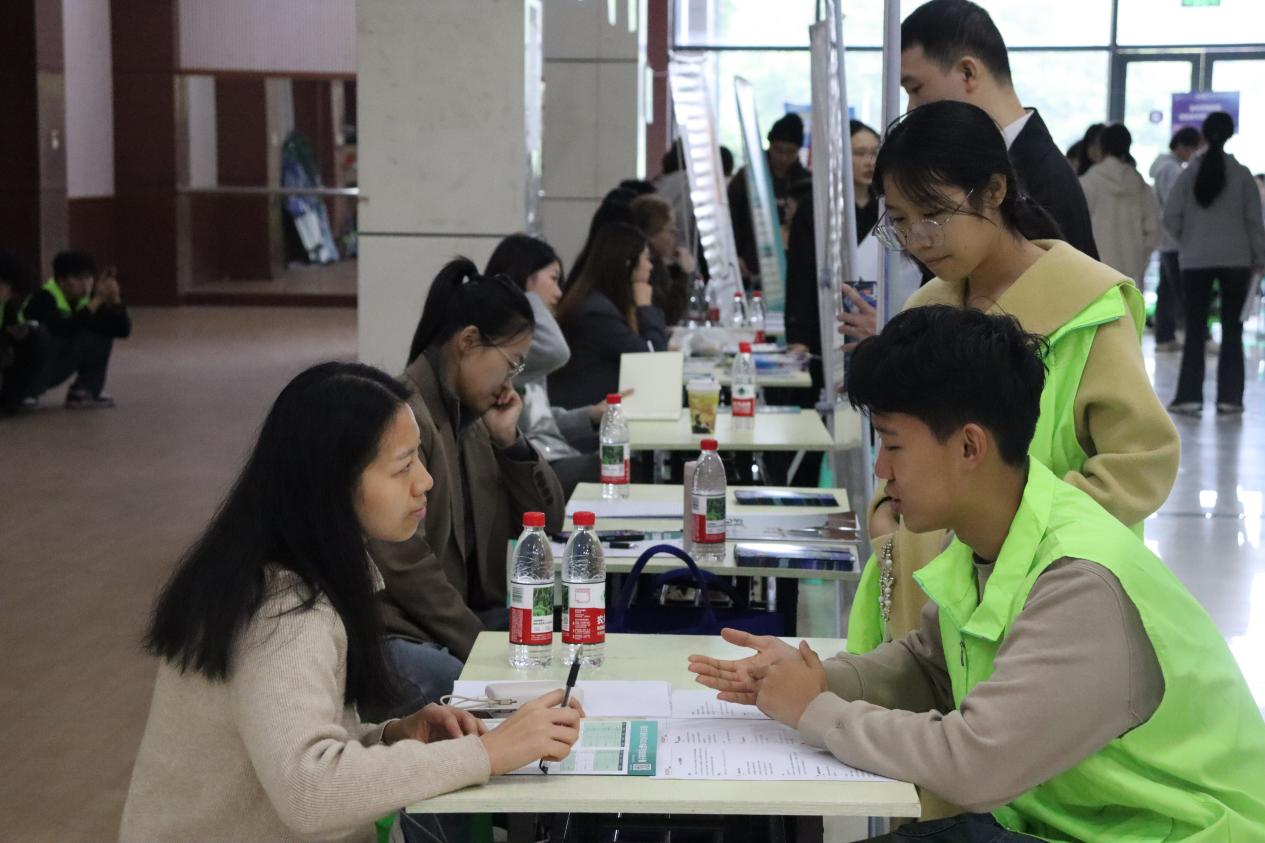毕业生们手持精心整理的简历与成果材料,穿梭于各展位之间,积极与企业招聘人员交流,认真咨询岗位细节,积极展示自身在专业学习、实习实践中的积累与亮点,详细咨询岗位要求与发展前景。