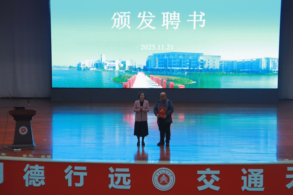 何荣波书记隆重地介绍了胡炜副总裁的行业贡献,并主持举行了简洁而庄重的聘任仪式,聘任胡炜副总裁为重庆交通大学大学生职业导师,舒琳处长为其颁发聘书。