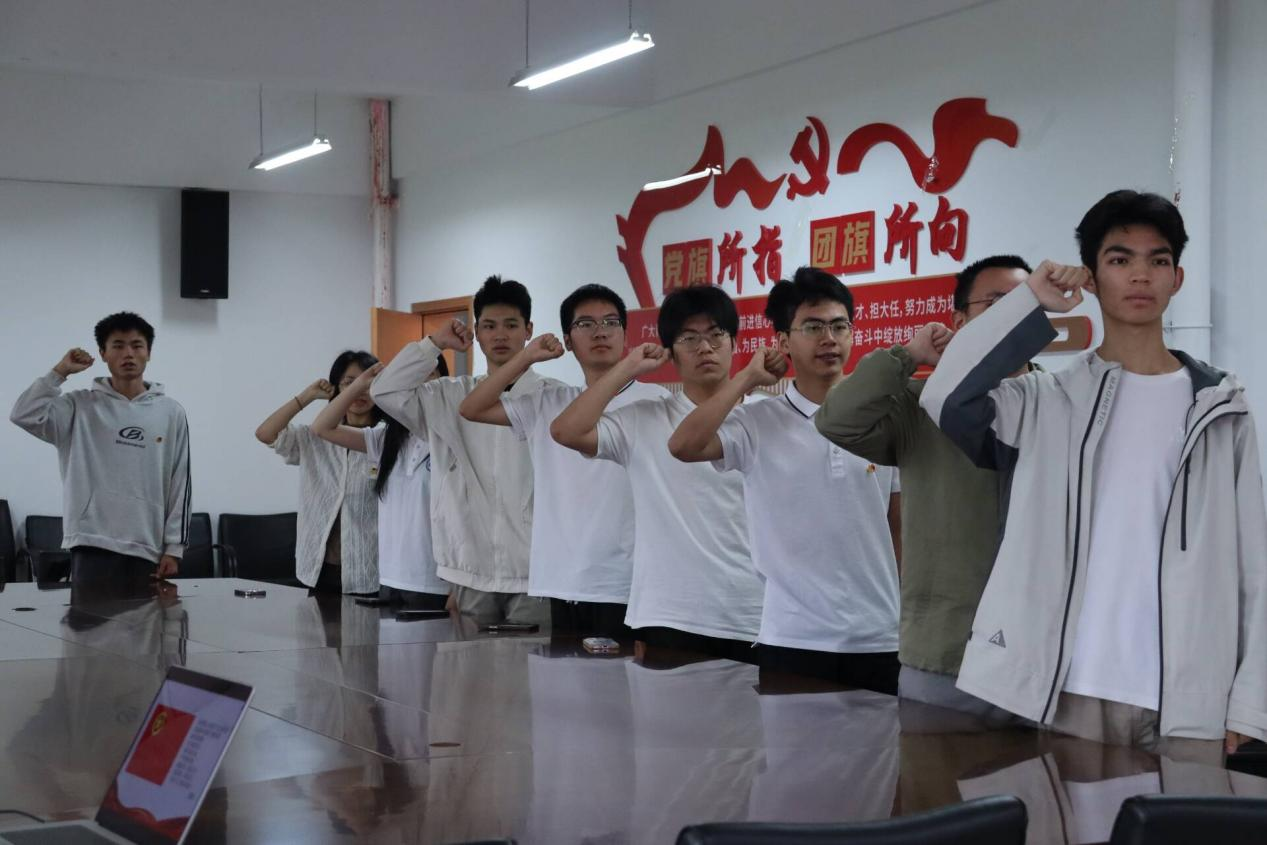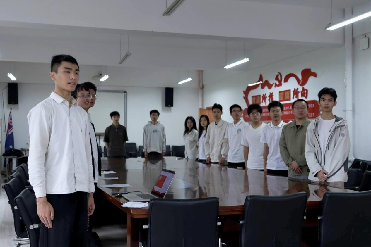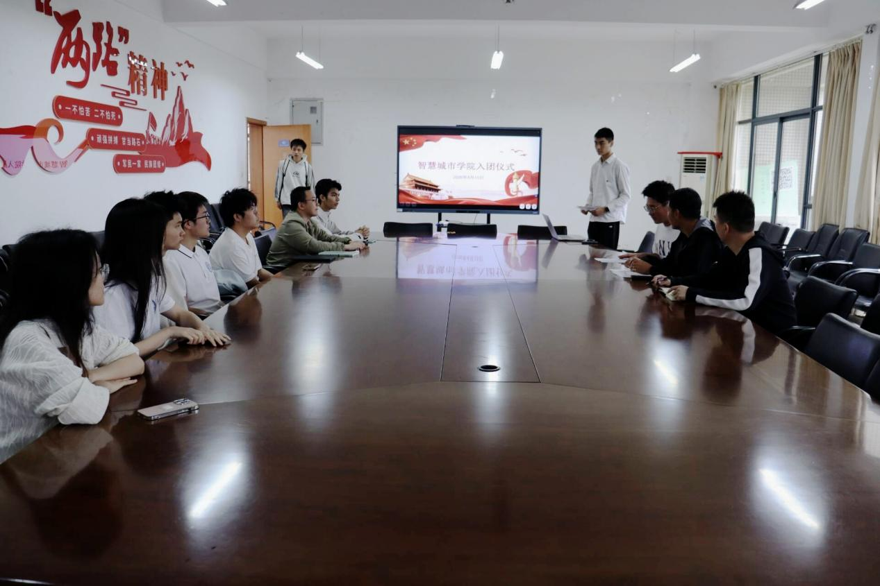 4月15日,智慧城市学院新团员入团仪式在科学城校区学生活动中心423会议室举行。学院党委副书记刘振老师、团委副书记李河星老师、优秀团员代表及全体新团员参加仪式。