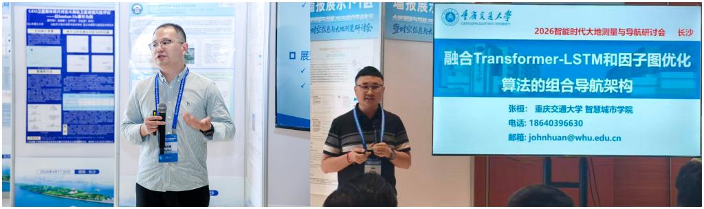 重庆交通大学智慧城市学院副院长唐菲菲教授,青年教师杨志鑫、张桓带领研究生共17人参加此次会议。会上,杨志鑫老师做题为“面向低轨卫星导航增强的轨道和钟差深度学习短期预报方法”报告,张桓老师做题为“融合Transformer-LSTM和因子图优化算法的组合导航架构”报告。智慧城市学院研究生卢宇、张智城、罗文燚、刘宇杭、周恩杰、郑良辉、王俊强、孟桥、徐柄衡、孔祥和、唐芳、杨馨悦、向青松、唐代川、张桐阳,分别就各自在GNSS实时定位、GPS弹性功率、GNSS对流层湿延迟预测、地质灾害监测预警等方面的研究成果做了口头报告。