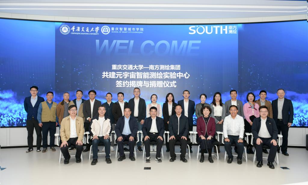 2025年10月28日下午,重庆交通大学与广州南方测绘科技股份有限公司(以下简称“南方测绘公司”)在重庆交通大学科学城校区智慧教育中心隆重举行“元宇宙智能测绘实验中心”签约揭牌与鸣谢仪式。双方将围绕智能测绘、元宇宙技术、产教融合等领域展开深度合作,共同推动测绘地理信息教育的数字化转型与创新人才培养。