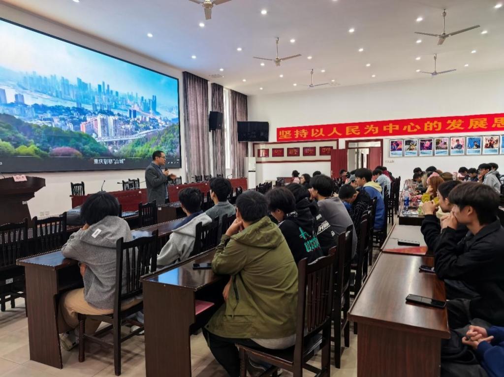 贺康金同志首先介绍了石滩镇的地形地貌,由“方斗山”引出石滩镇背后的解放大西南的红色记忆,讲解石滩镇的红色遗迹。特殊的地形地貌,孕育了石滩镇特殊的植被资源,石滩大米、有机蔬菜、云雾茶叶获国家地标认证。贺康金同志还介绍了石滩镇信息化建设发展现状,向同学们展示了智慧大屏、实景三维等与地理空间信息工程专业直接相关的真实应用。并现场提出项目需求,指出石滩目前仅仅依靠农业还难以支撑区域发展,急需在旅游资源上进行开发,希望同学们利用所学知识,对石滩镇的旅游资源进行挖掘,解决目前遇到的问题。