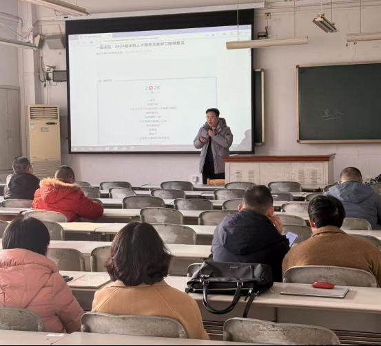 为全面深化本科教育教学改革,深入贯彻OBE理念,扎实推进2026版本科人才培养方案修订工作,在教务处副处长刘礼标线下宣讲的基础上,由地信系系主任周李磊领学,组织地信系和测绘系全体教师集体研读了教务处公众号推文《一图速览:2026版本科人才培养方案修订指导意见》。