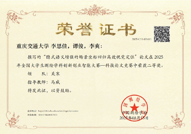 全国大学生测绘学科创新科技论文竞赛二等奖(2025)